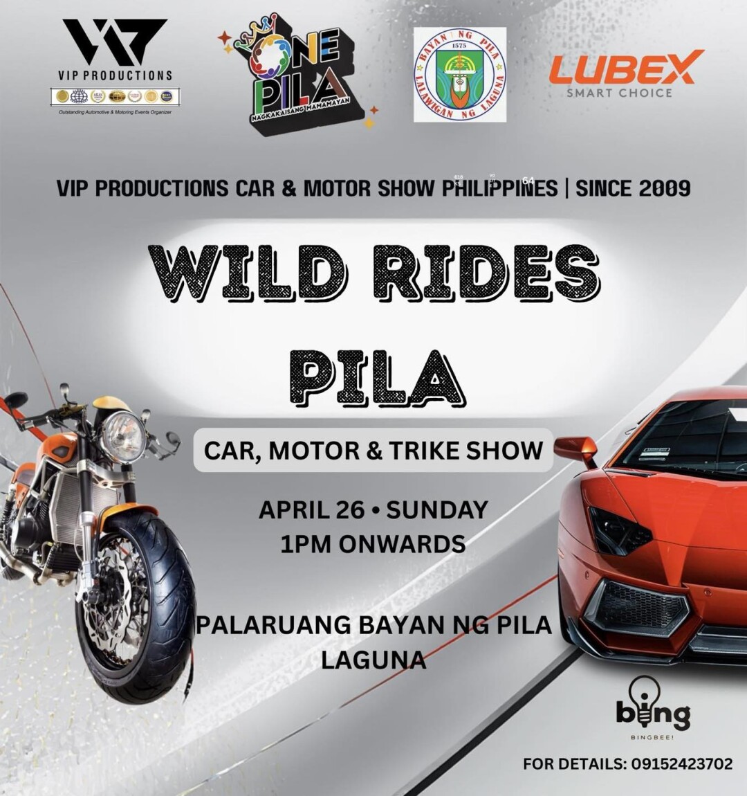 The OFFICIAL Car and Motorbike Show of Taytay Hamaka Festival is all set! Get ready for WILD RIDES Taytay-Hamaka 2023 NATIONAL SHOW SERIES All VIP Productions’ Wild Rides Participants will get a chance to win 1 brand new motorbike in the raffle. Imported trophies to be given away. February 11, Saturday (‼️ingress cutoff 5pm, may change depending on the venue capacity) San Juan Gym (Inside and Outside) Walk in entries to all, no reservations needed. All rides are welcome to join! Open category system, we will judge according to your ride. From the basic street level to the wildest rides! ❇️Selected winners will get JRP choice with giveaways from GameApe, Autogard, Asian Lifestyle Thai Slides, JVE and more! With bonus loudest exhaust, rhythmic rev and burn out competition! FREE for VIEWERS, NO GATE FEE.