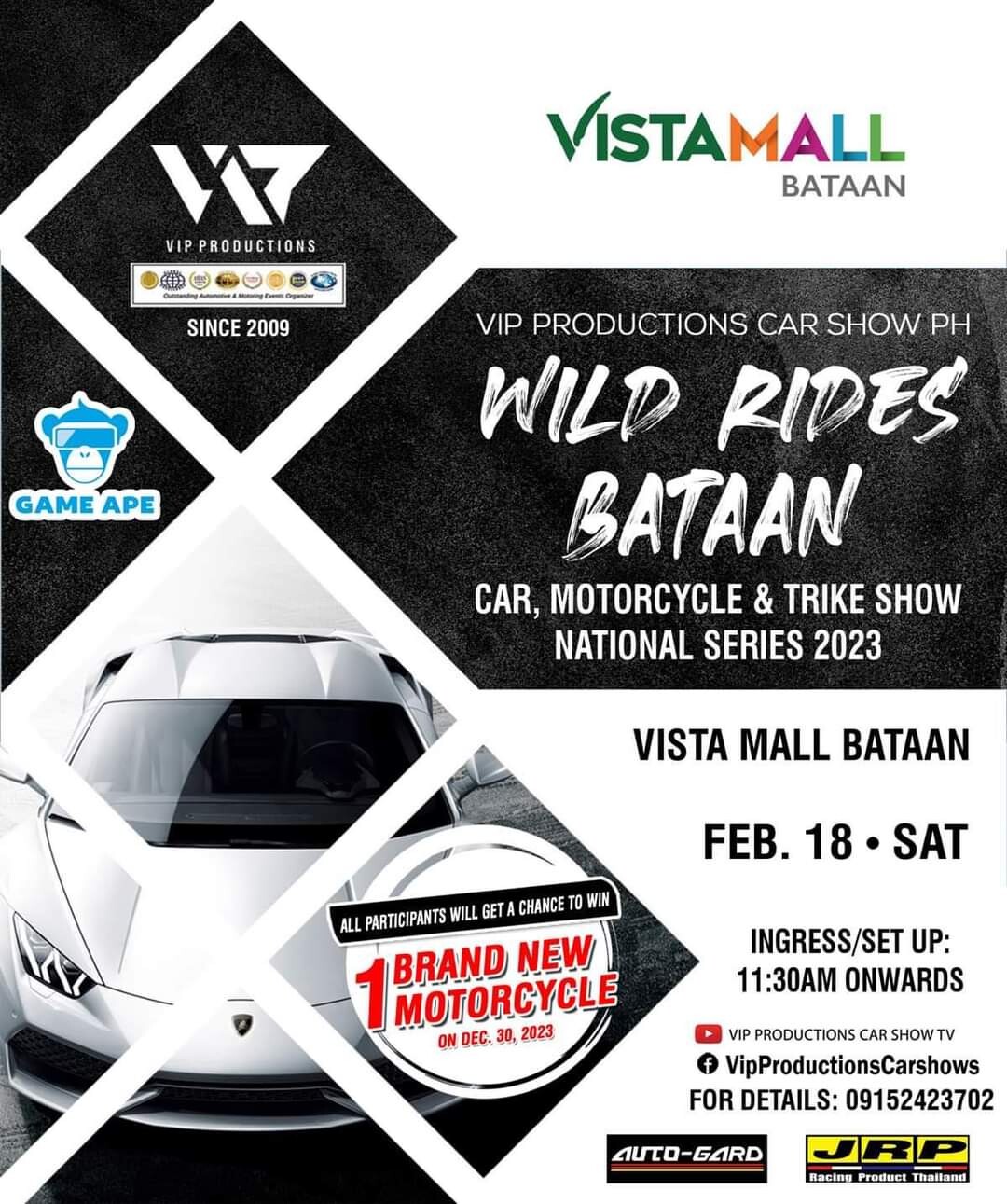 All VIP Productions’ Wild Rides Participants will get a chance to win 1 brand new motorbike in the raffle. Imported trophies to be given away. (‼️ingress cutoff 5pm, may change depending on the venue capacity) Walk in entries to all, no reservations needed. All rides are welcome to join! Open category system, we will judge according to your ride. From the basic street level to the wildest rides! Selected winners will get JRP choice with giveaways from GameApe, Autogard, Asian Lifestyle Thai Slides, JVE and more! With bonus loudest exhaust, rhythmic rev and burn out competition! FREE for VIEWERS, NO GATE FEE.