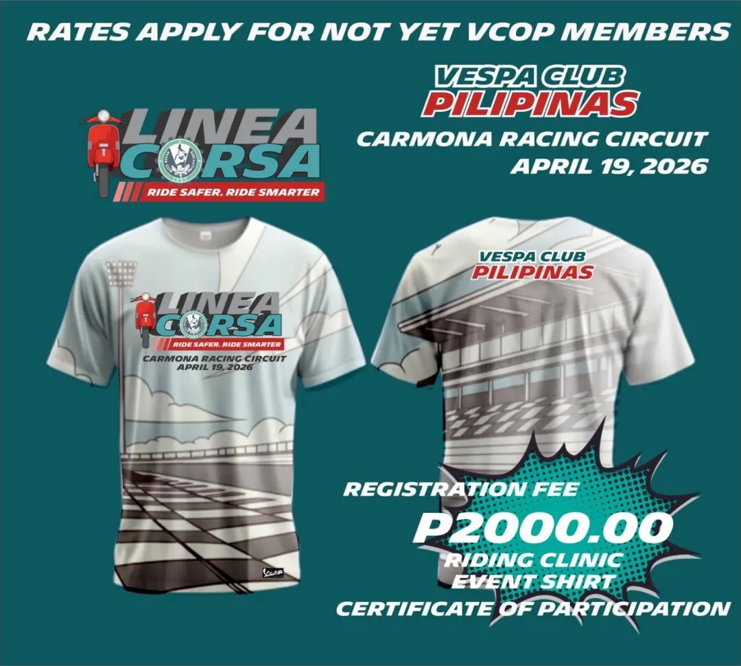 Registration is now OPEN: Linea Corsa Riding Clinic! Ready to sharpen your skills? Whether you’re an official VCOP member or a guest joining the pack, it’s time to get on the track! This clinic is all about mastering technique, NOT RACING , perfect for anyone looking to ride smoother and safer. 💰 Registration Rates: • Official VCOP Members: Just ₱800 (Includes the Official Event Shirt + Clinic Entry + Certificate) • Non-Members / Guests: ₱2,000 (Event Shirt + Clinic Entry + Certificate) Registration Deadline: March 15. 2026 Click here to register! https://vespaclubph.com/lineacorsa/— at Carmona Racing Circuit.